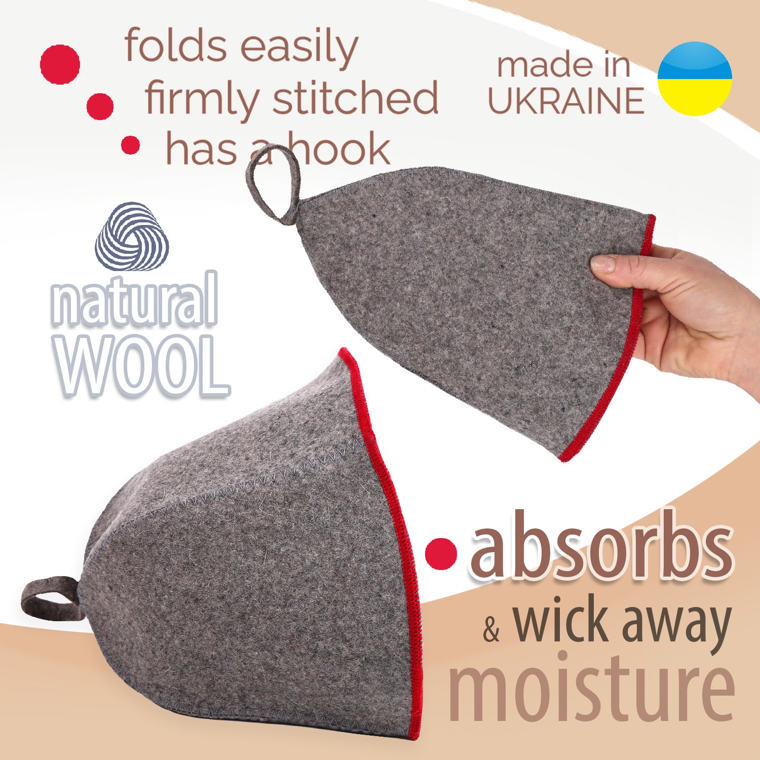 - β NATURAL - π 100% wool sheep Sauna hat