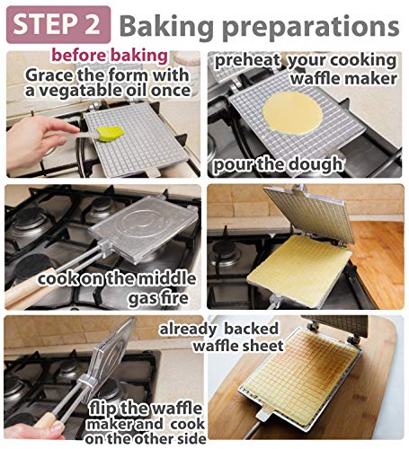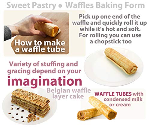 Features: It is safe to use at fuel gas stove, none power consumption Long handle is easy to grip and heat insulation, open and close freely Mainly made of aluminum alloy, high quality, food grade safe and sturdy and durable To make waffle cone easily by this tool, suitable for home kitchen