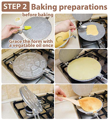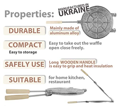 Features: It is safe to use at fuel gas stove, none power consumption Long handle is easy to grip and heat insulation, open and close freely Mainly made of aluminum alloy, high quality, food grade safe and sturdy and durable To make waffle cone easily by this tool, suitable for home kitchen