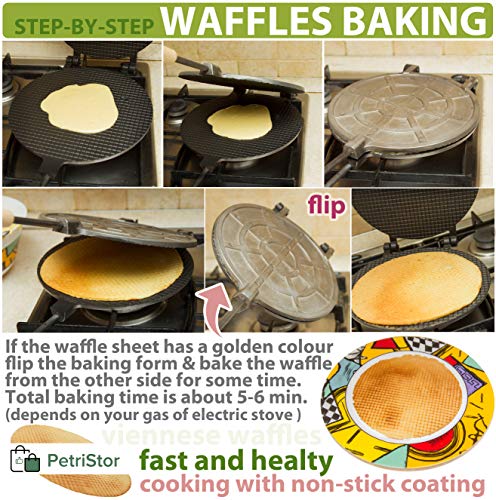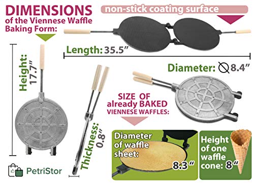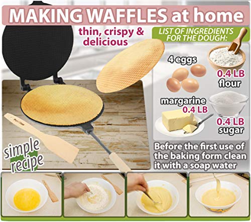 Features: It is safe to use at fuel gas stove, none power consumption Long handle is easy to grip and heat insulation, open and close freely Mainly made of aluminum alloy, high quality, food grade safe and sturdy and durable To make waffle cone easily by this tool, suitable for home kitchen Food Surface Coatings Operating temperature: constant / intermittent -195 to + 260 ° С / 315 ° С (500 / 600F °) Anti-adhesive, anti-corrosion, anti-friction properties Using: 1 For food 2 Dishwasher 3 Healthy and fast cooking 4 Durable 5 Easy to wash 6 Do not scratch