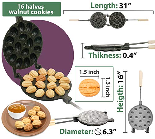 Walnut Cookie Maker 16 halves non-stick coating granite stone